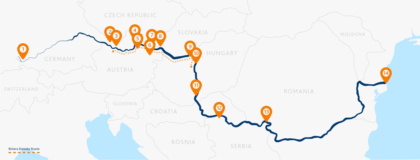 Sailings from all river ports on Danube river to World wide via Constanta port.